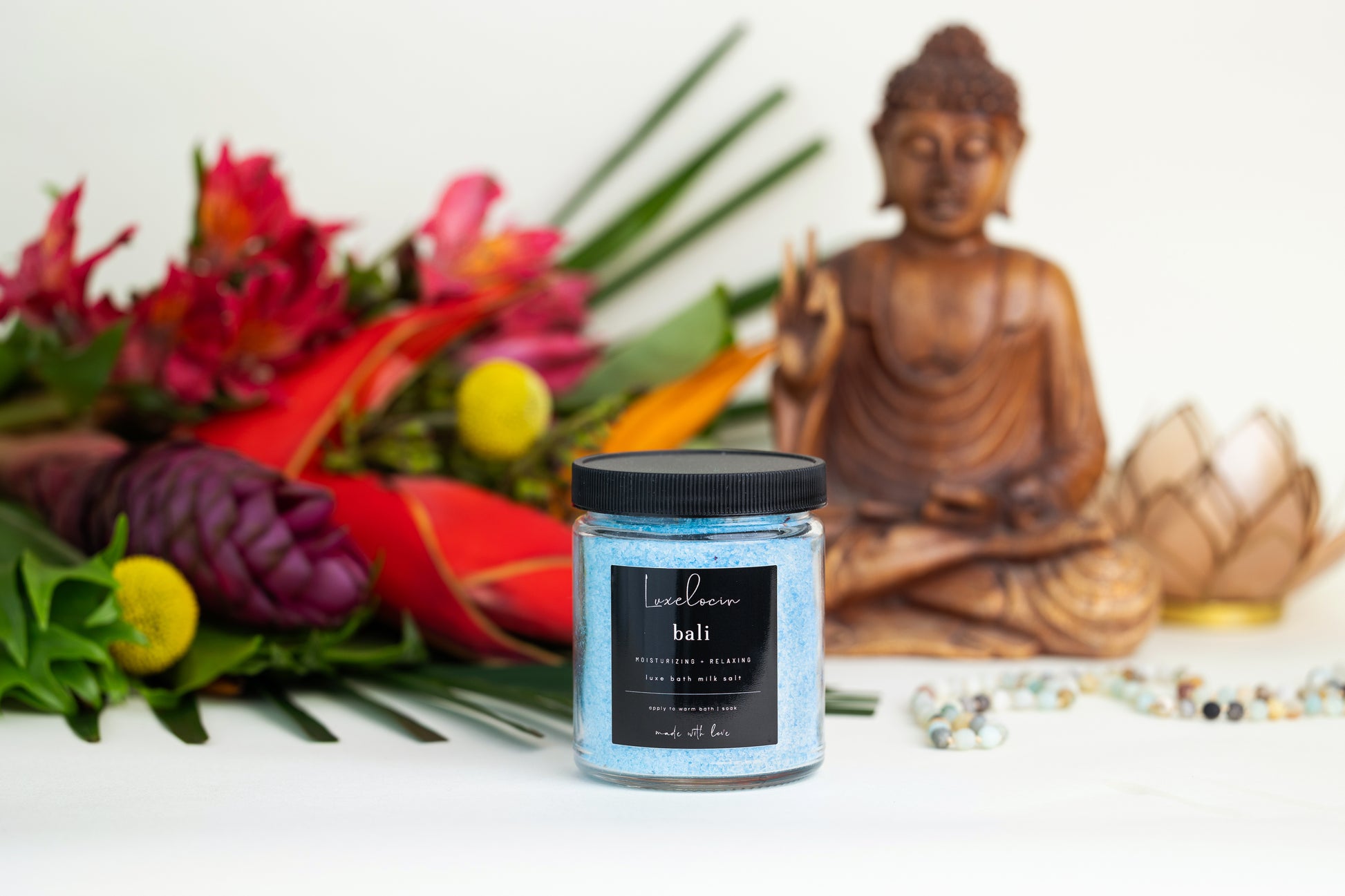 Each luxe bath salt has a different extract for a special treat. All extracts have vitamins that leave the skin feeling soft and luxurious. Bali bath milk salt is infused with dragonfruit extract.