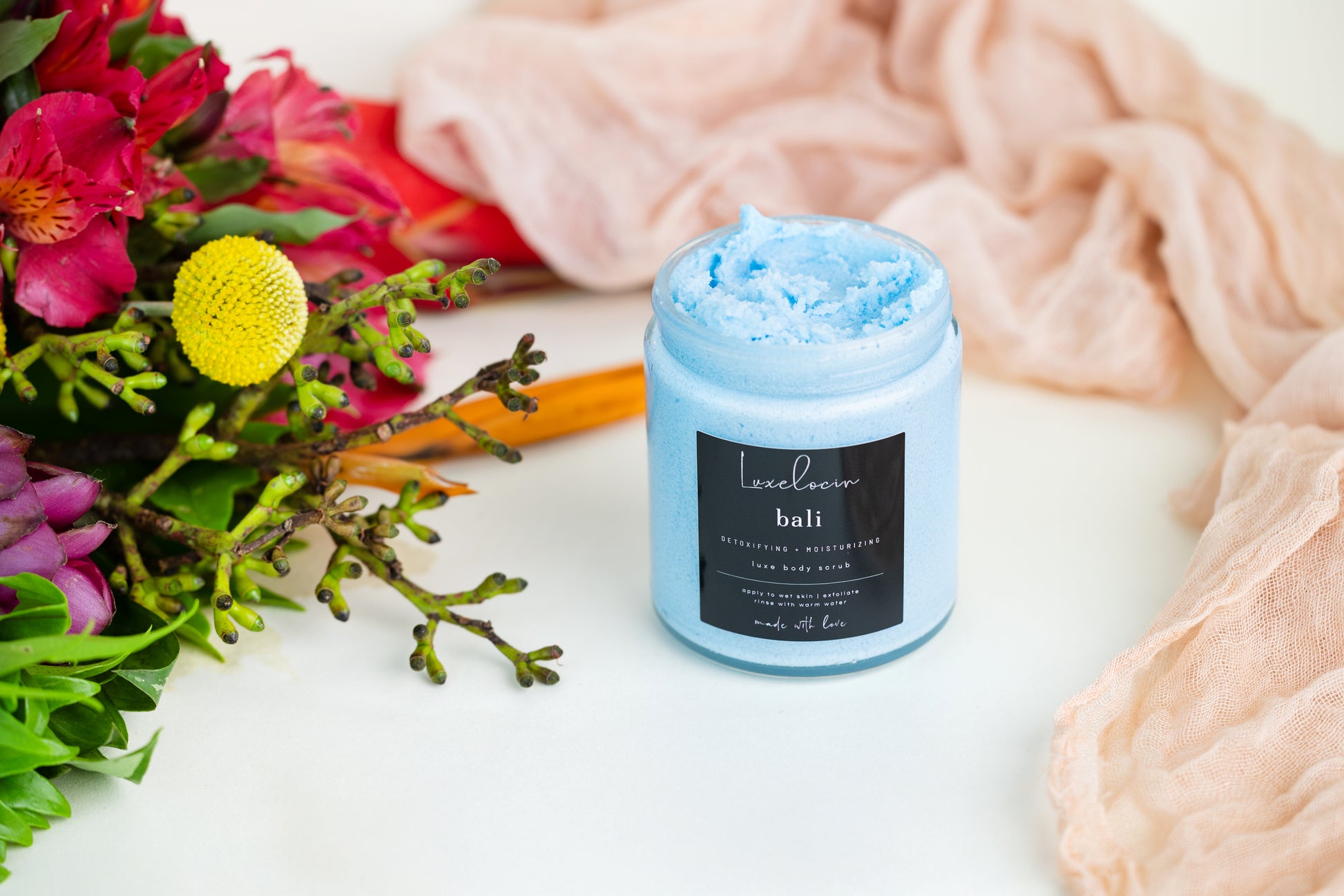 Luxelocin foaming body scrub is hydrating, exfoliating and refreshing. Scrub your cares away with all natural ingredients including organic cane sugar, aloe butter, coconut oil, fragrance and essential oil.