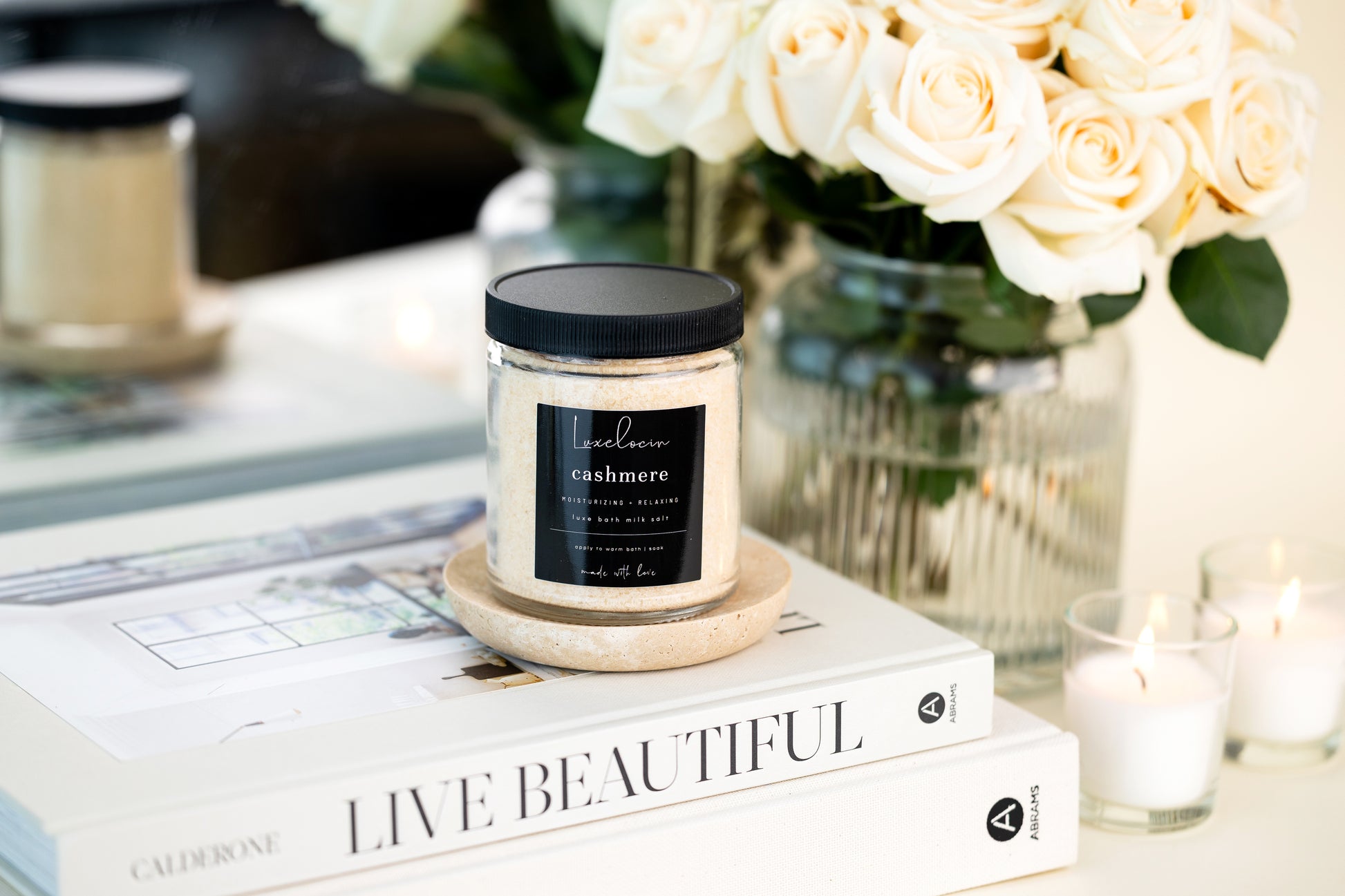 Luxelocin bath milk salt is not like your typical salt. We infuse our bath salts with coconut milk and vitamin enriched extracts to make your bath not only relaxing but providing beneficial nutrients to your skin.
