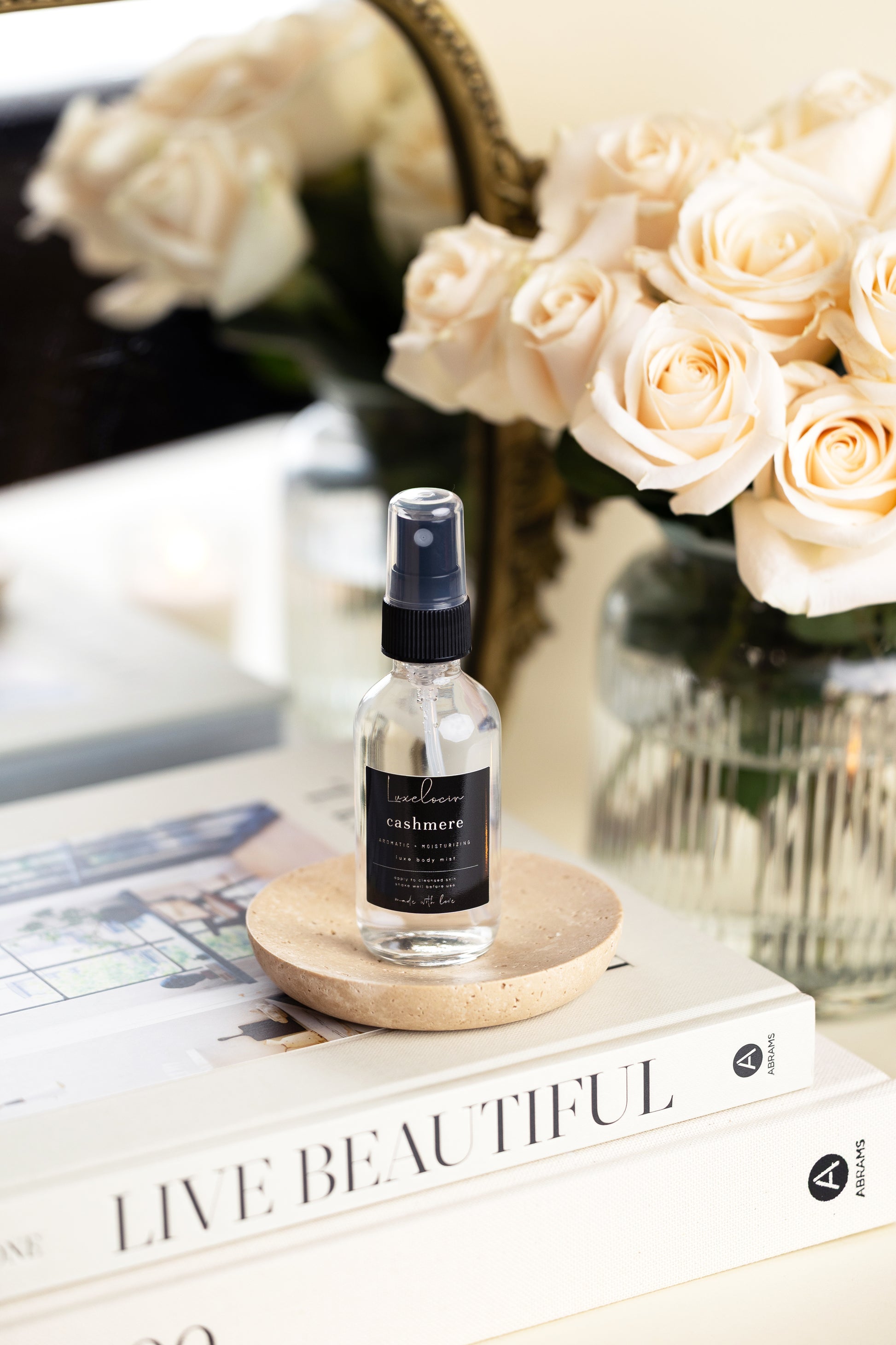 Luxelocin body mist is packaged in a eco-friendly glass spray bottle. Net weight | 2 oz