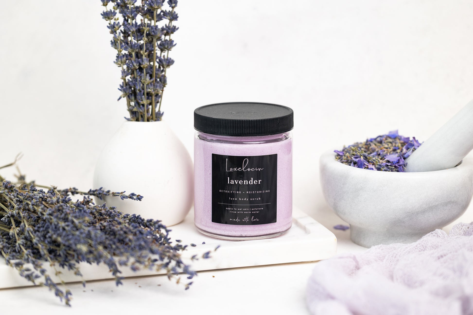 Luxe foaming body scrub is fine grain making it perfect for sensitive skin + exfoliating dead skin cells away.