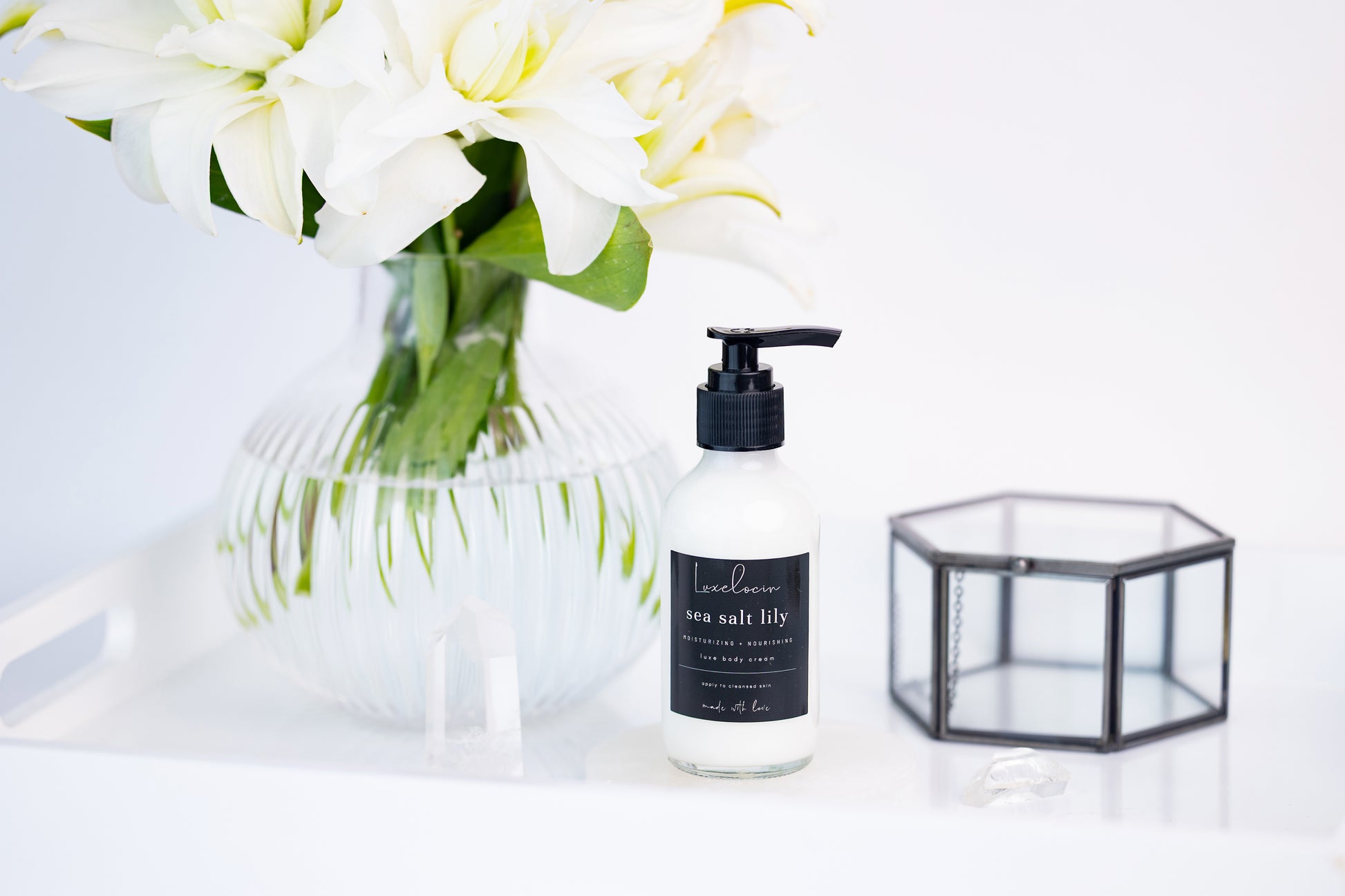 Luxe body cream is packaged in a eco-friendly glass bottle with pump. Net weight | 4 oz.